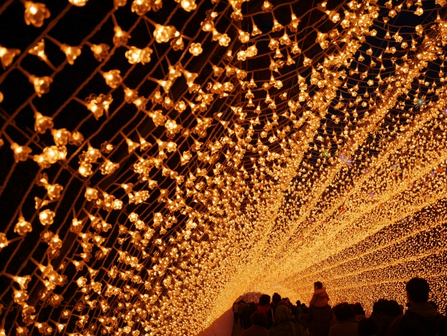 Nabana no Sato Illumination is the largest illumination in Japan, and the scale of illumination that shines brightly over a wide area is as if you have come to a different world. In addition, there are illuminations on the water surface, and the tunnel of shining light is so vivid that it illuminates people and makes them feel a fantastic atmosphere.