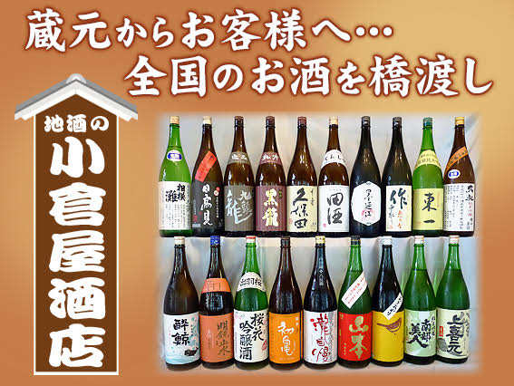 八王子市の地酒専門店「小倉屋酒店」は、日本酒を中心に販売している酒販売店です。日本全国の蔵元から、ほとんどの日本酒を直接仕入れ販売しているこだわりの酒屋。「プレミア価格」販売はせず、取り扱い日本酒すべてが正規特約店価格です。本醸造から大吟醸、四季折々の季節限定酒など、各蔵元が丹精込めて醸し出した日本酒を取り揃えております。 当店は「蔵元からお客様へ…全国のお酒を橋渡し」を理念に、「魅力あふれる日本酒をお客様にお届けしたい」」 「お酒を通して人と人との繋がりを大切にしたい」 そんな想いから、ネット販売はせず、対面販売を基本に初心者から愛好者まで丁寧に対応させていただいています。年末年始のご挨拶やお歳暮、ご両親へのプレゼントなどにもご利用ください。 「これから日本酒を飲んでみようかな!」 「好みの日本酒が見つからない!」など、ご来店いただければご相談に応じます。