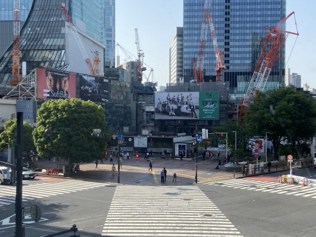 信号が青になると一斉に道路を渡る人々の光景は圧巻です。