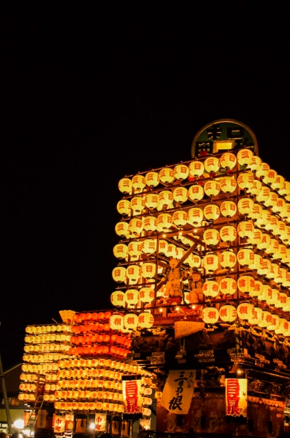 高さ10メートル以上の曳山が町を練り歩くお祭りです。国の重要無形民俗文化財に指定されており、昼は花山、夜は提灯山の装いを楽しめます。