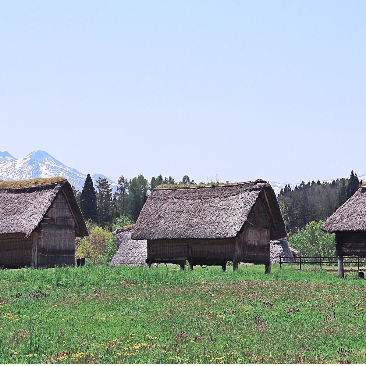 三内丸山遺跡は縄文時代の遺跡です。クルミやクリなどの木の実、魚などの骨が大量に見つかっています。この遺跡は過去に前例の無いほど大規模な集落跡であり、世界遺産にも登録されました。