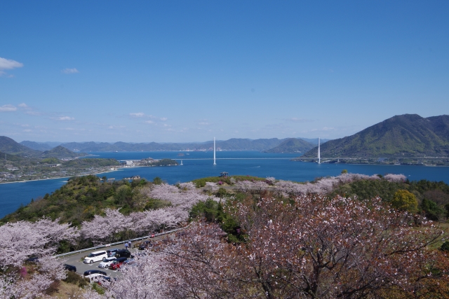 春になればソメイヨシノを始めとした約1000本の桜が爛漫と咲き誇り、桜の名所としても有名です。展望台からは、瀬戸内の島々が一望できるます。