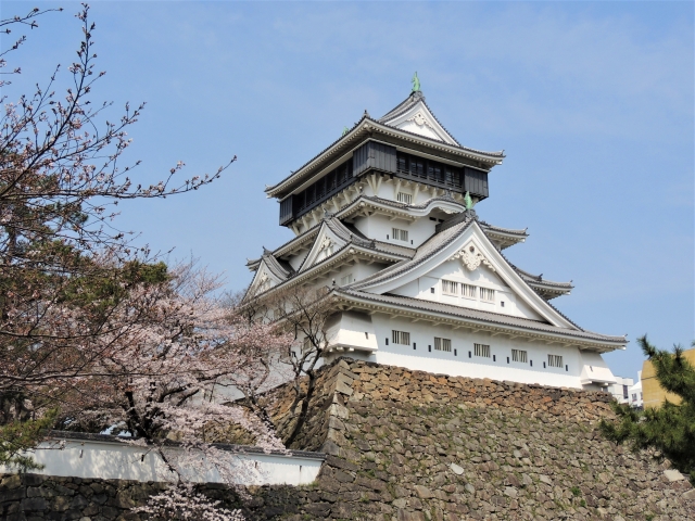 1602年、細川忠興公が約7年の歳月を経て築上した小倉のシンボルで、初期天守の望楼に通じる4階より5階が大きい「唐造り」の名城として知られています。 春は約300本の桜、秋にはケヤキやイチョウの美しい紅葉が見られます。