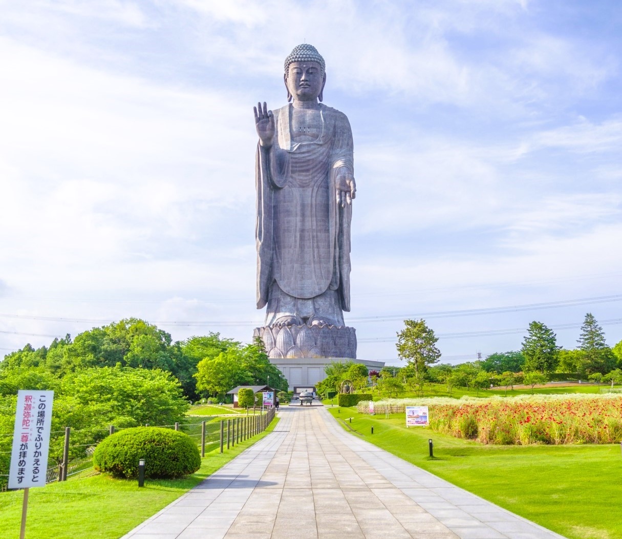 Ushiku Daibutsu was registered in the Guinness Book of Records in 1995 as the tallest "standing bronze statue" in the world. It is so overwhelmingly large that the Great Buddha of Nara could fit in the palm of one's hand.