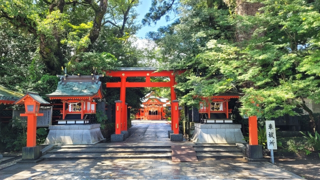 標高924mの開聞岳の麓にある古社。天照大神などの8柱を祀っており、交通や航海の安全や漁業守護のご利益があるといわれております。