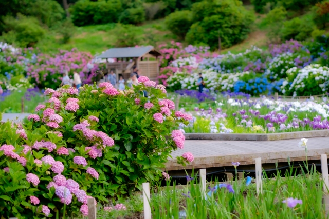 横須賀しょうぶ園は、市立の公園であり、日本最大級のハナショウブの庭園です。約14万株のハナショウブが約7,000m2の菖蒲田に咲き乱れ、色とりどりの花々が水面に映えます。5月から6月にかけては、しょうぶ祭りが開催され、コンサートやイベントが楽しめます。また、園内にはふじ苑やしゃくなげ苑、バラの庭園、スイレン池などもあり、四季折々の花の魅力を堪能できます。横須賀しょうぶ園は、花と緑に癒される素敵なスポットです。