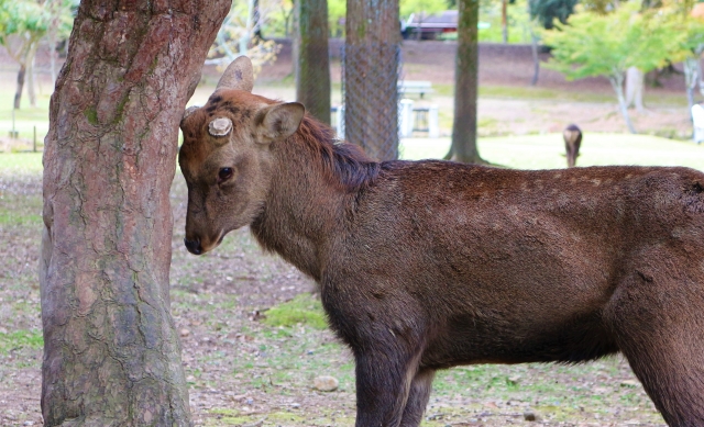 鹿の角きりは決して鹿を傷つけているわけではなく、発情期を迎えて気性が荒くなった雄の鹿が伸びた角で人間や他の鹿を傷つけないようにするために行います。この頃の鹿の角は血管や神経が通っていないため、人間が爪を切るように鹿に痛みはありません。鹿の角は古来から魔除けや水難から守ってくれるとの言い伝えがあり、切られた鹿の角で作られるアクセサリーは大人気です。