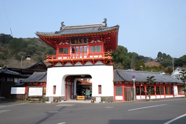 大正4年に建築された朱塗りの楼門がシンボルであり、夜のライトアップされた姿はまさに圧巻。