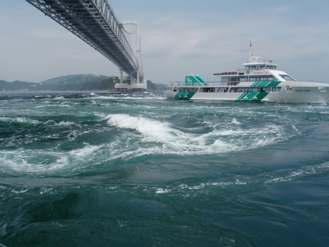Uzunomichi is a sea promenade that is installed under the roadway of the Onaruto Bridge and allows you to walk at a height of about 45 m above the sea while feeling the sea breeze. There is a glass-floored observation room at the end of the 450 m walkway, where you can look down at the “whirlpool” that occurs in the “Naruto Strait”, one of the three major tidal currents in the world.
