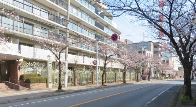 沿道にはクリニックやカフェなどがあり、住みやすく散歩にも最適な通りです。