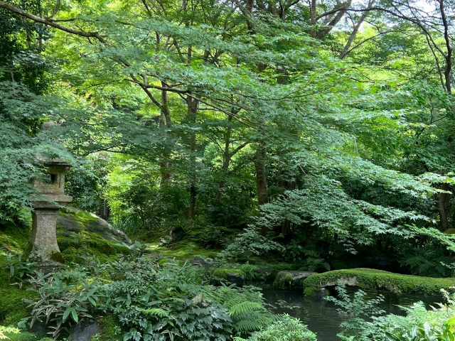 ここでは、池泉回遊式や枯山水などの様式美を楽しめます。池泉回遊式は、池や小川を中心に、橋や石灯籠などの景観を配した庭園です。枯山水は、砂や石などを使って山や水を表現した庭園です。