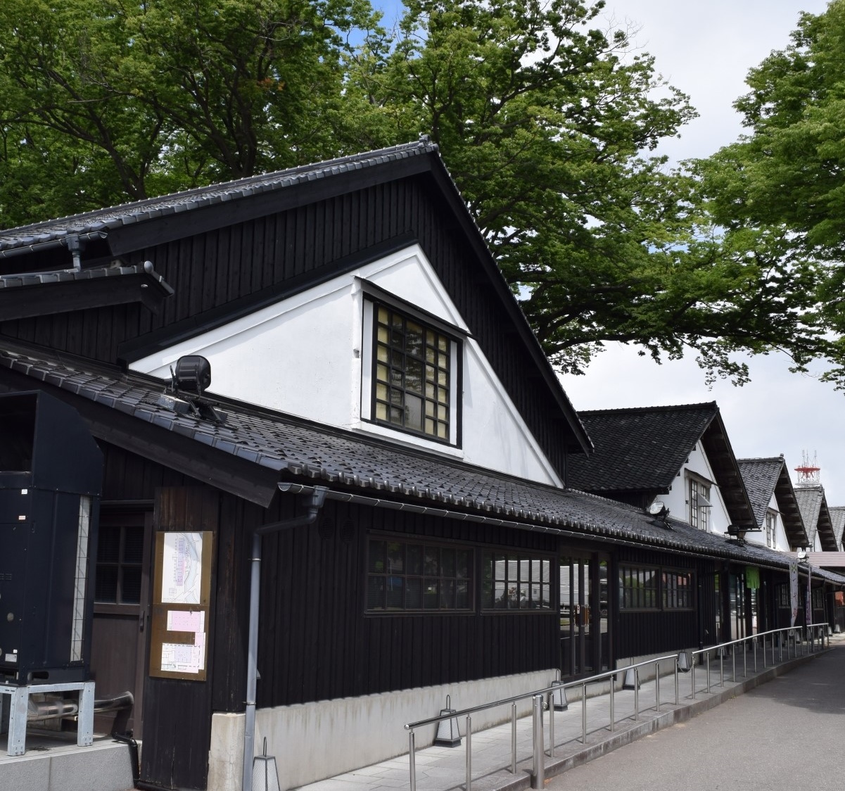 This row of Meiji-era rice storage warehouses offers a retro atmosphere. In addition, there are rows of zelkova trees nearby, which offer various contrasts with the warehouses depending on the season.